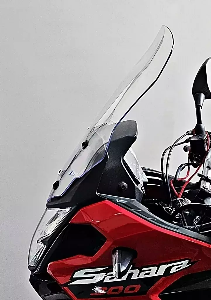 A Bolha SAHARA300 é um acessório que desvia para outra altura a pressão do vento no peito do motociclista, livrando o piloto do vento incômodo, proporcionando mais conforto e segurança na pilotagem da moto.